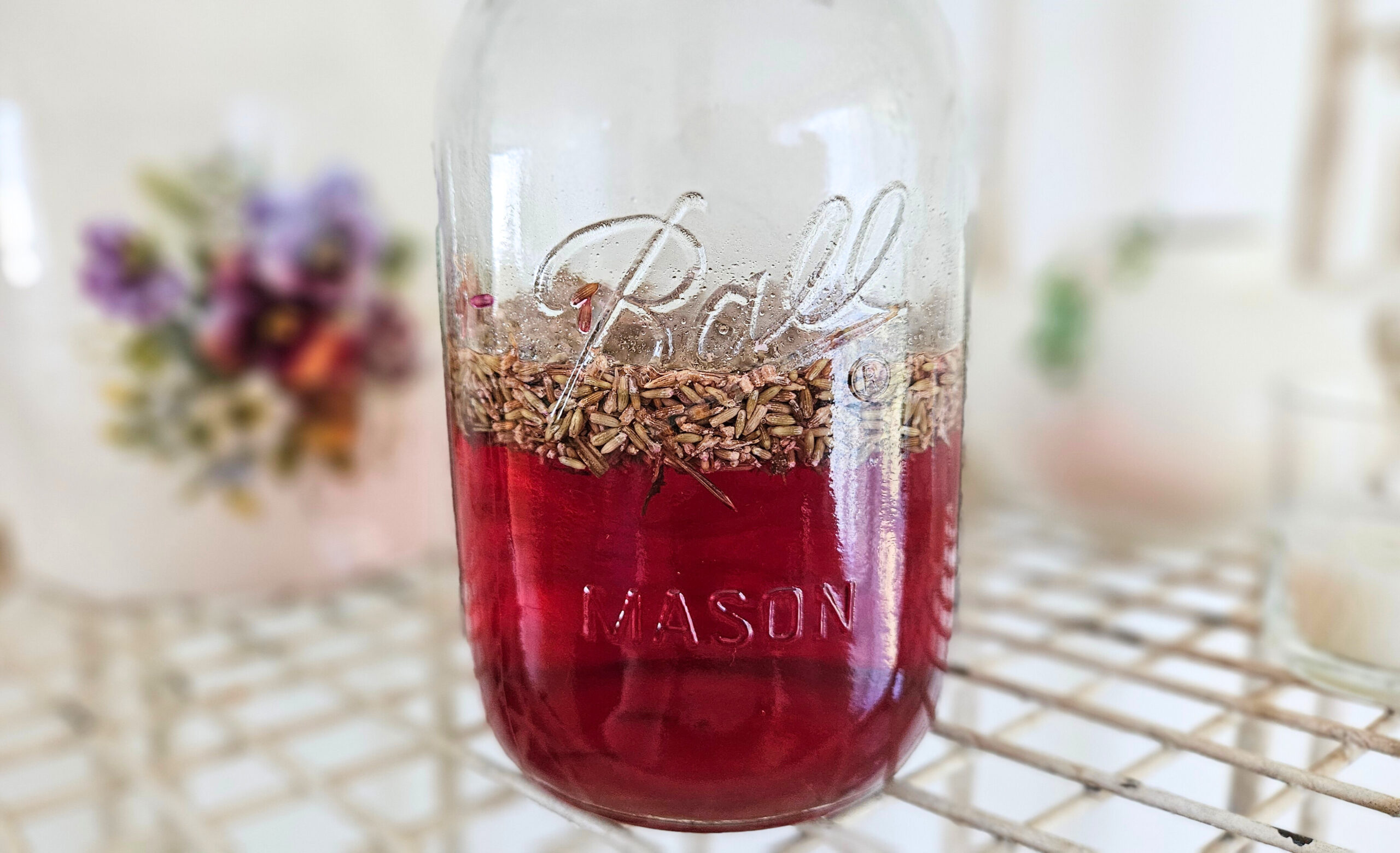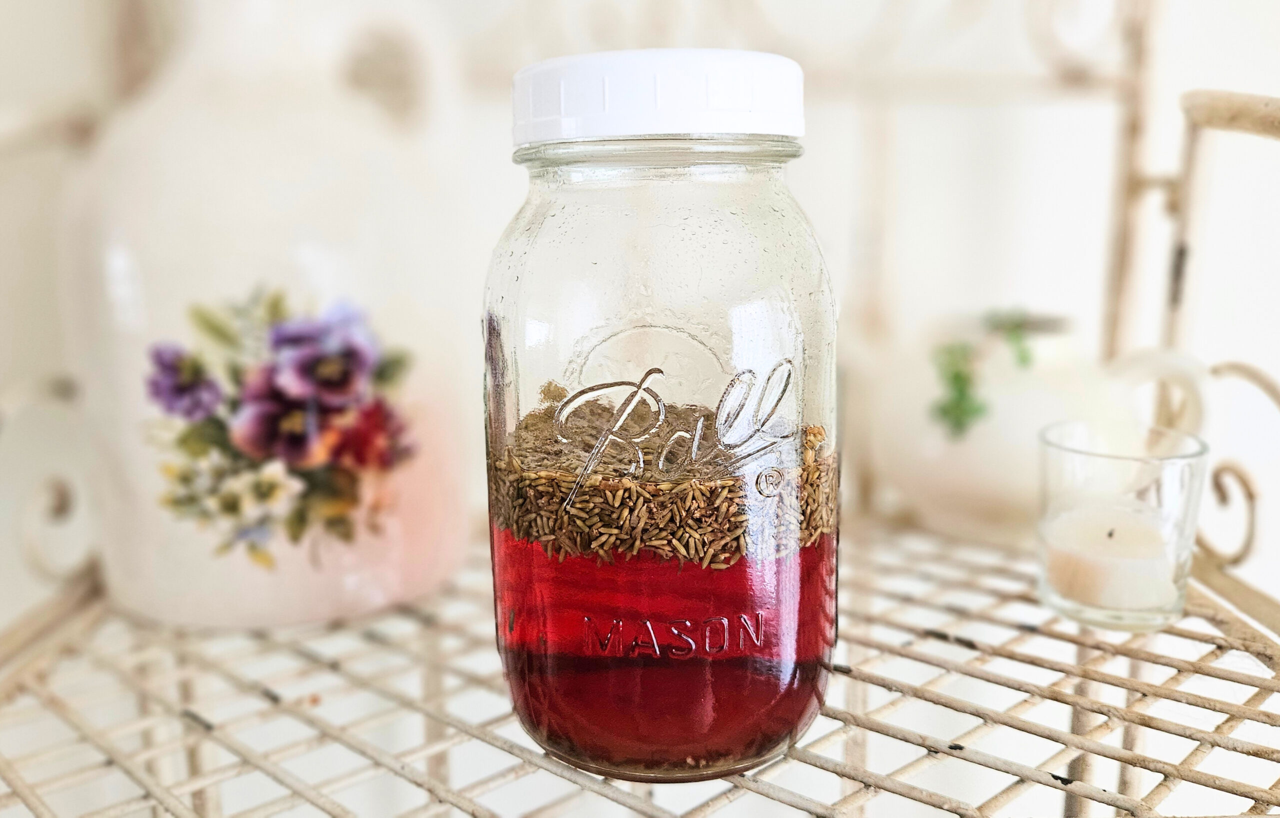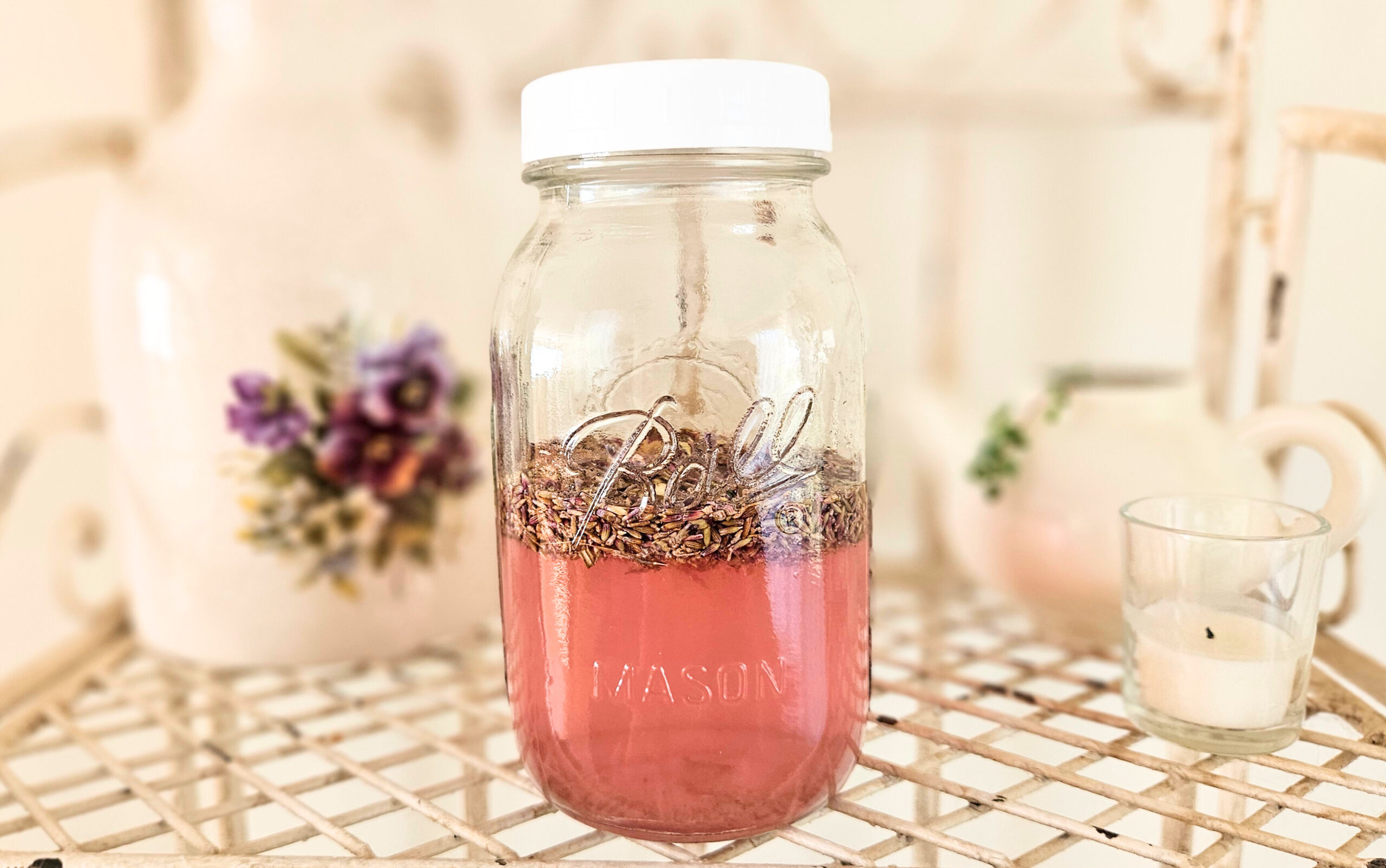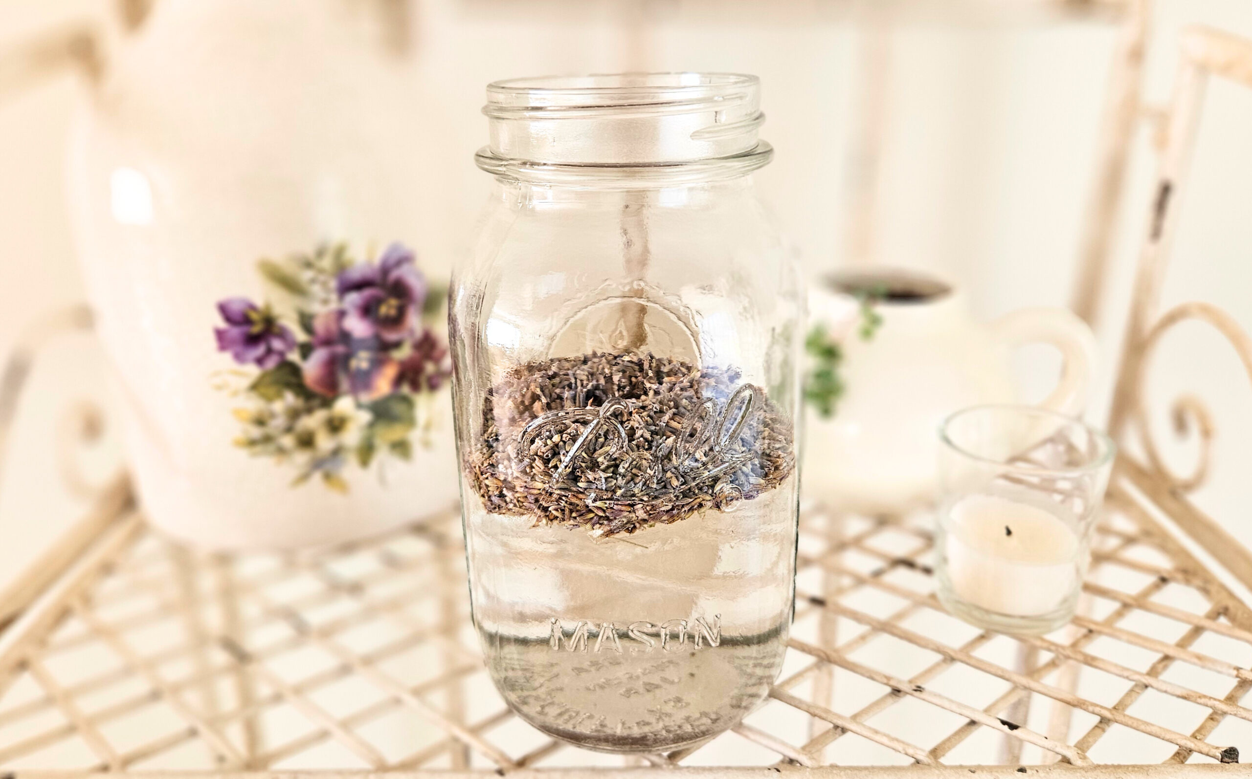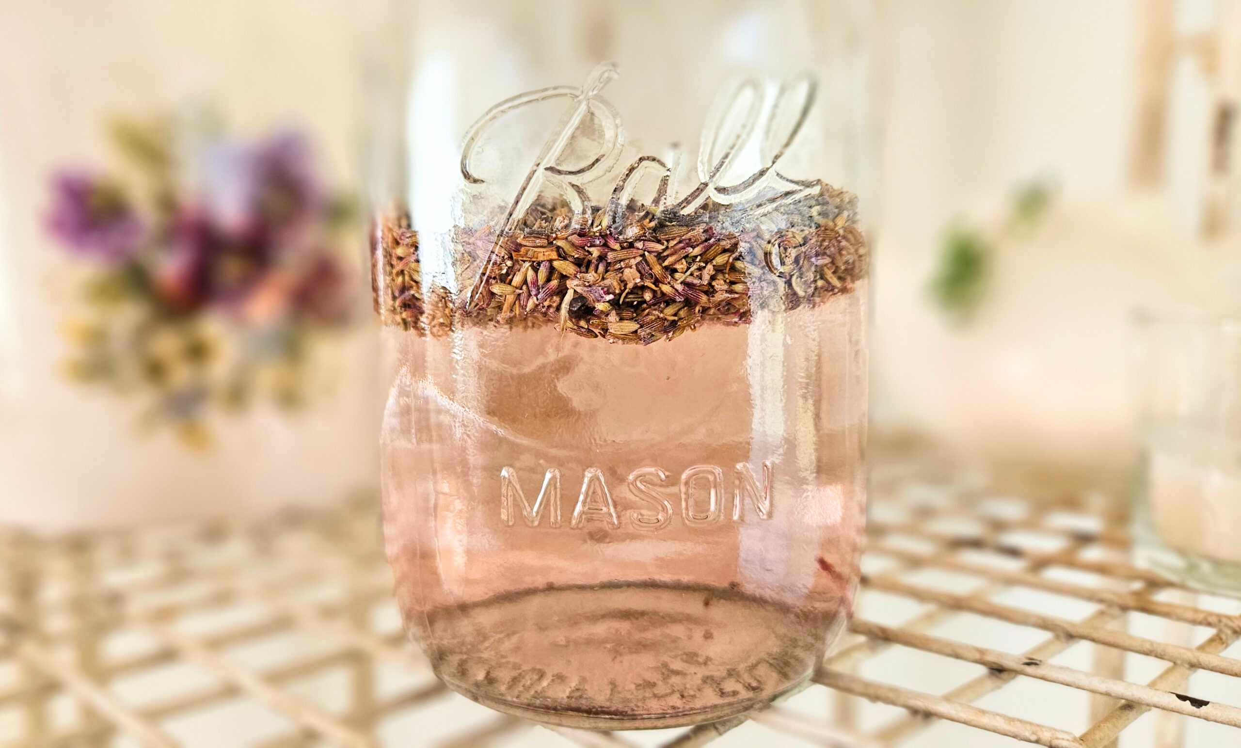 - Place ½ cup dried lavender flowers in a quart size mason jar.