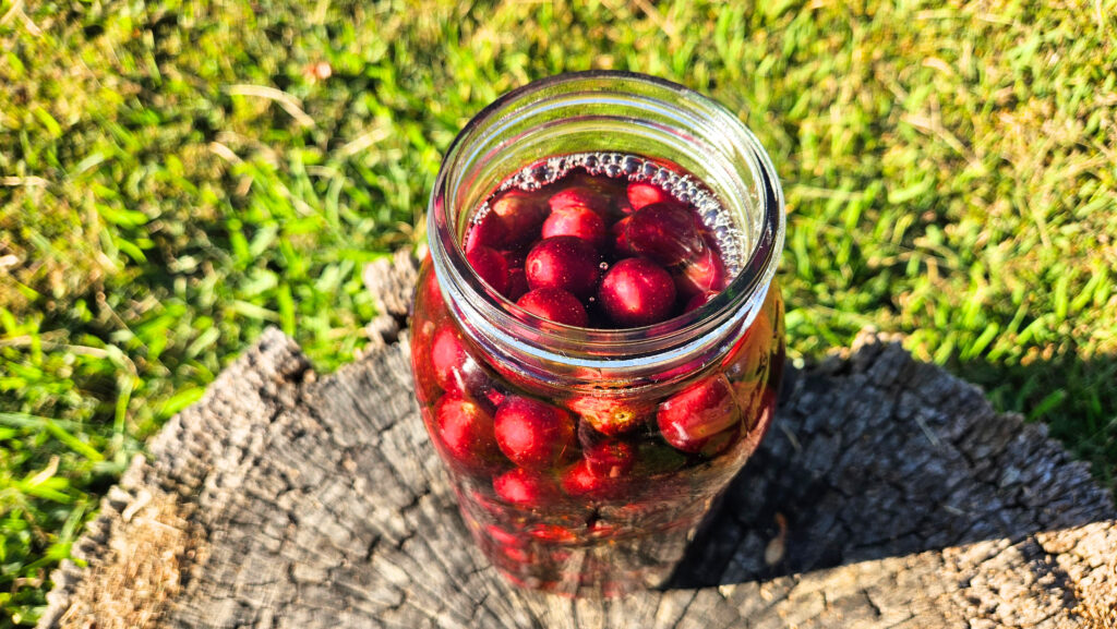 - Stir everything together and add a fermentation weight on top. It is important to push the fermentation weight down so that your muscadines are fully submerged under the water. If you do not have a fermentation weight, be sure to stir the jar 1-2 times per day, every single day.