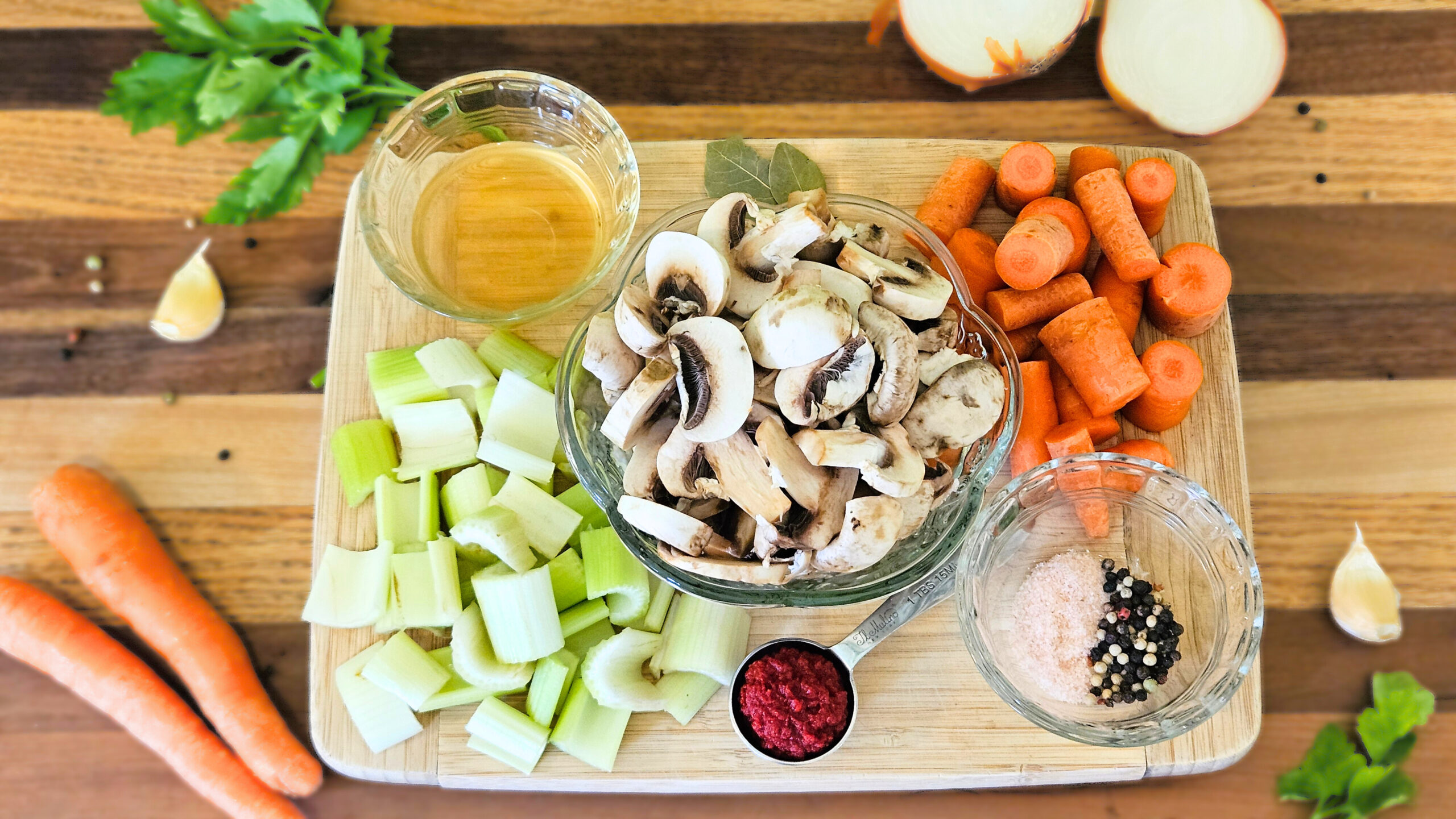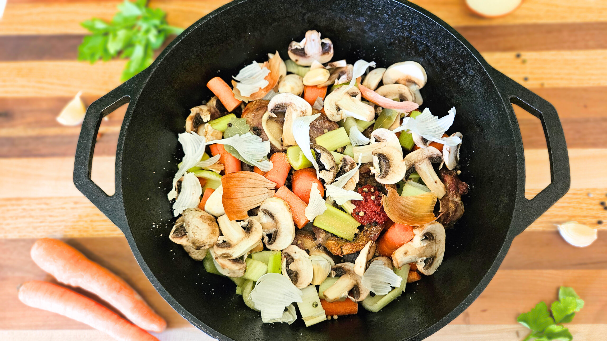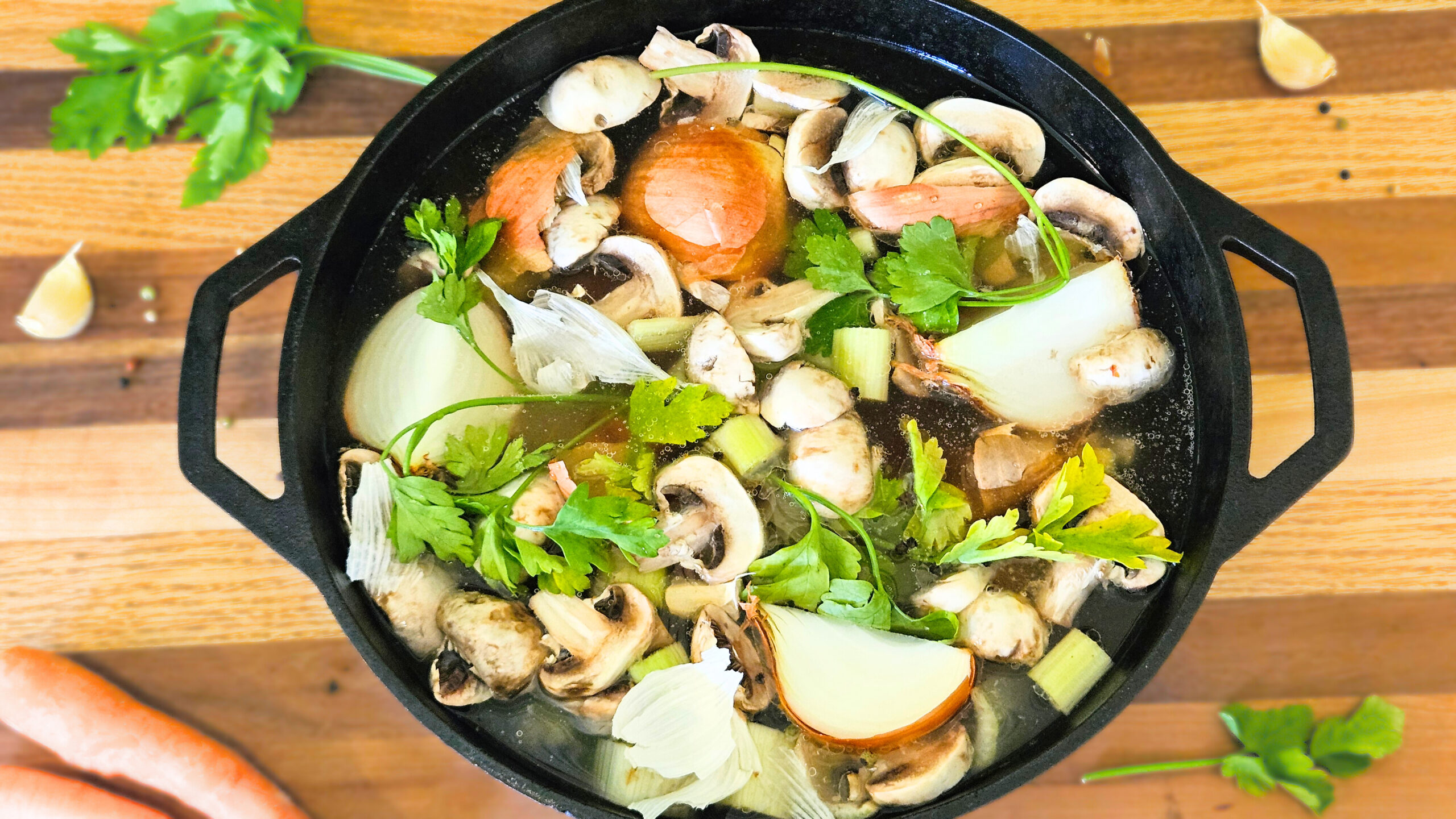 - As an alternative to using the exact vegetable amounts listed in the recipe, you can use vegetable scraps that you have saved, such as ends and peelings. You can have a Ziploc bag in your freezer that you continuously add scraps to.