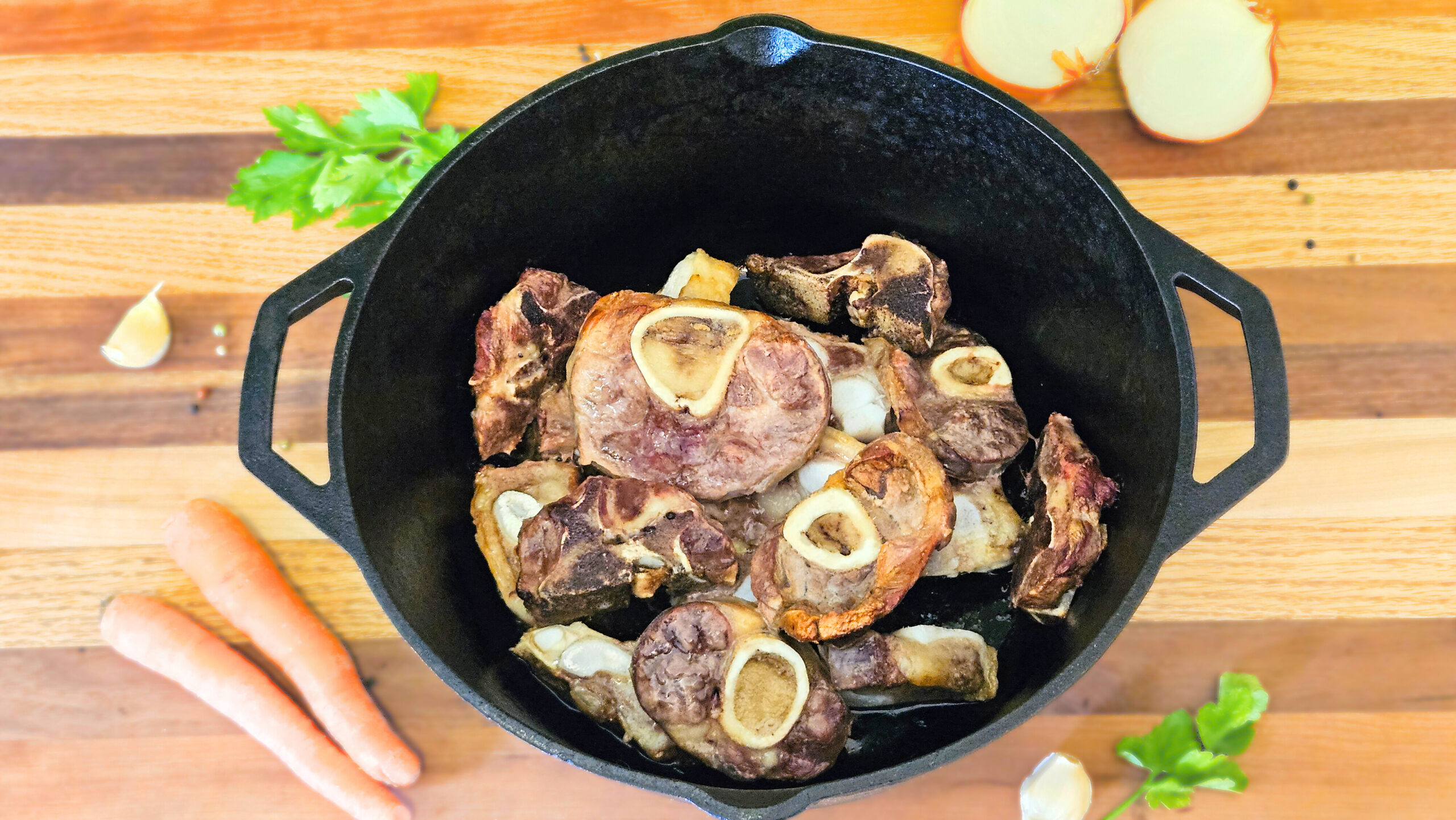 - Bring a pot of water to boiling and submerge your beef bones in the boiling water for about 10-15 minutes.